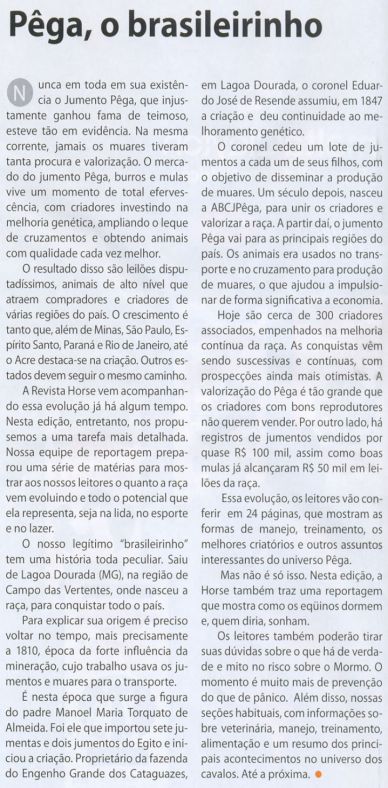 Jumentos de Elite - Melhoramento da raça pega amplia o mercado